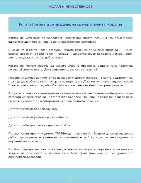Моралът винаги е бил и ще бъде разменна монета в ръцете ни. Когато не ни достига интелект, за да обосновем позицията си логически, цялата ни мощ се насочва към това да я обосновем нравствено. Брошурата е част от поредицата по приложна психология, приложена към книгата на Миглена Ангелова „Искрено и лично за Големия VIP Брат“.
